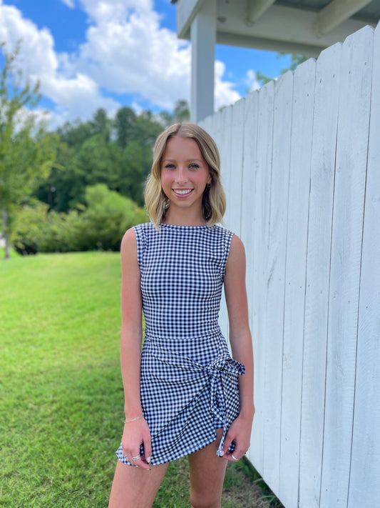 Gingham Front Tie Athletic Dress