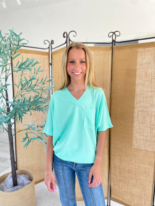 Basic Waffle Knit V-Neck Top