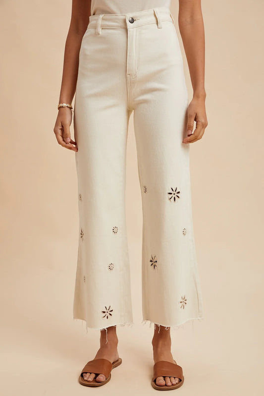 Risen Cream Eyelet Jeans