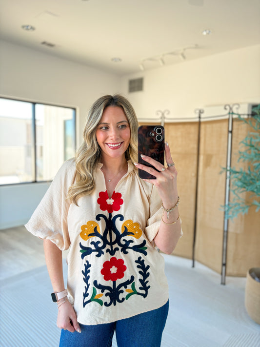 Sold outDaphne Patterned Puff Sleeve Blouse
