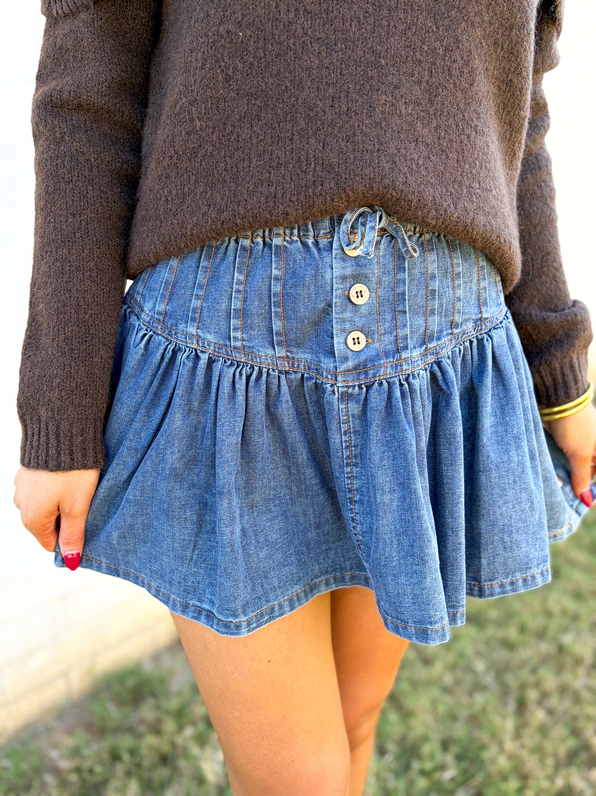 Denim Flowy Mini Shorts